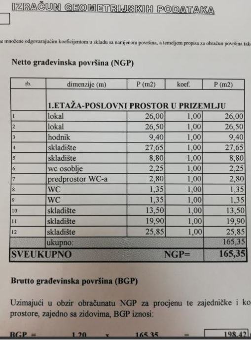 Poslovni prostor u prizemlju ukupne površine od 165,35 m2, koji se sastoji od lokala sa 26,00