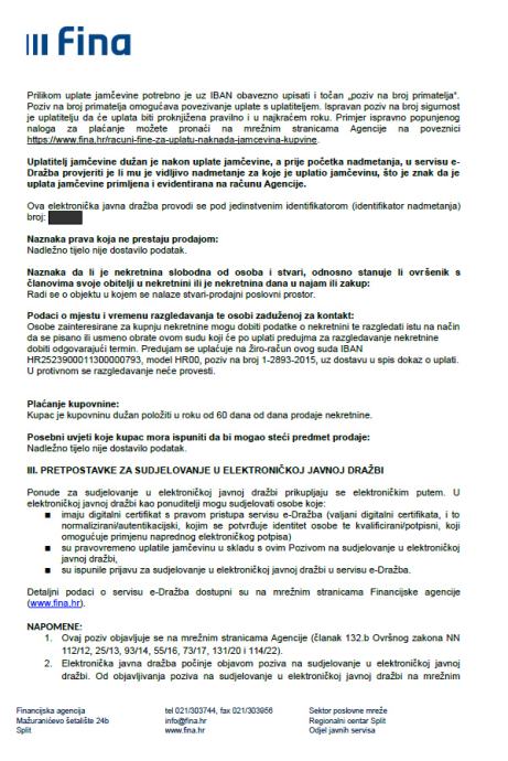 Uvjeti i način provedbe dražbe navedeni su u istaknutom pozivu na sudjelovanje.