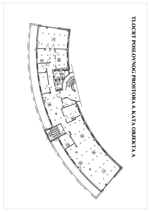 Uredska cjelina se sastoji od 7 ureda raznih veličina, open space-a, toaleta, kuhinjice, server sobe i terase/balkona.