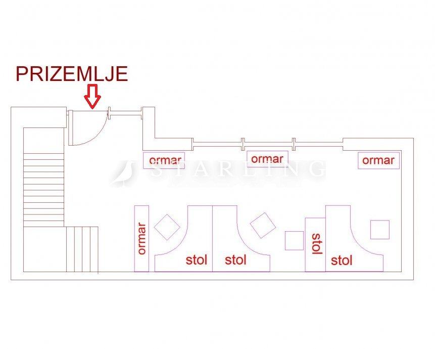 Poslovni prostor se sastoji od dvije velike prostorije, kuhinje, ostave i wc-a.