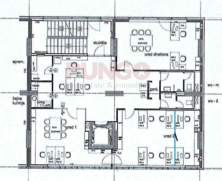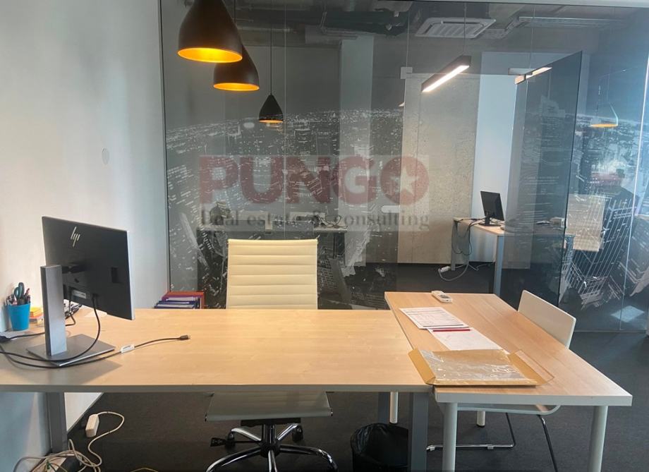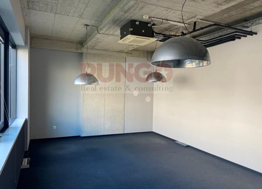 Kompletno uređeni ured A klase nalazi se na 2.katu moderne poslovne zgrade izgrađene 2009. godine. Termo-izolirajuća fasada, UV zaštitna stakla, kvalitetna uredska rasvjeta, kompjutorski pod, 4 cijevni sustav klimatizacije, ventilacija, detektori dima, vatrodojava, sprinkler sustav zaštite od požara… dizalo.