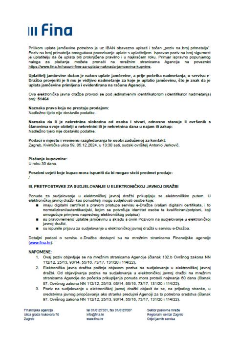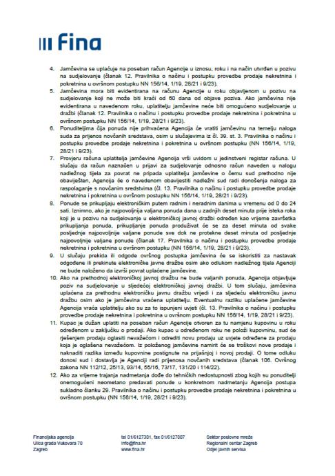 Uvijeti i način provedbe dražbe navedeni su u istaknutom pozivu na sudjelovanje.
