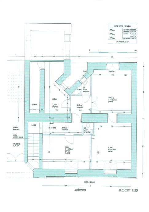 Poslovni prostor u visokom suterenu stambene zgrade,u centru Zagreba, površine 100 m2. Visina je 270 cm. Suh, svijetao i uredan prostor od četiri prostorije. Direktan i zaseban ulaz sa ceste. Video nadzor ulaza. Lakirani parketi, Keramika. Grijanje je bilo na plin, a trenutno je grijanje električnim grijalicama. Plinska instalacija postoji, ali se ne koristi. Isprva je bio stan, pa obrtnička radiona, pa ured. Trenutno je prostor iznajmljen korisnicima, koji žele ostati u najmu i dalje. CIJENA: 250.000 Eura + porez. Telefon 091 584 7859