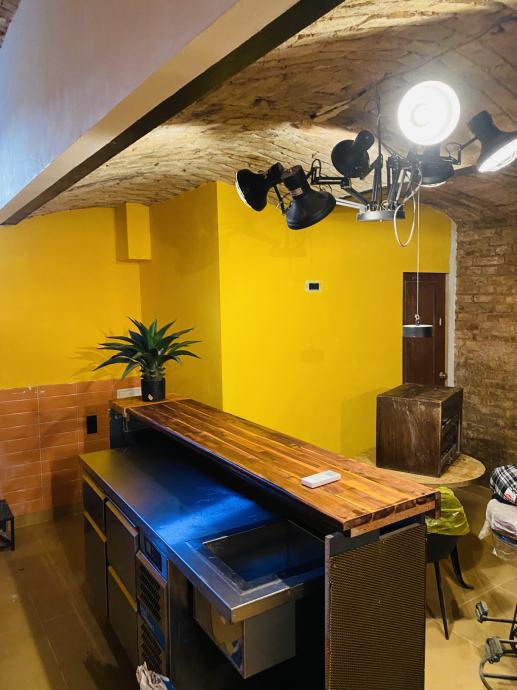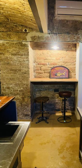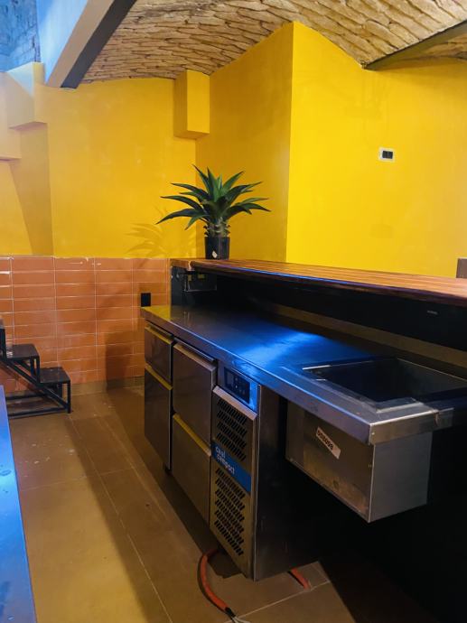 Prostor je pripremljen za ugostiteljstvo ali može biti za bilo koju drugu namjenu zbog odlične lokacije.Prostor je suterensko podrumski sa dnevnim svjetlom i prozorom koji gleda na trg.