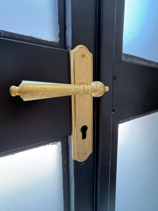 - svježe restaurirana, unikatna, drvena troslojna vrata s novom pozlaćenom bravom, u skladu sa spomenicima za zaštitu kulture