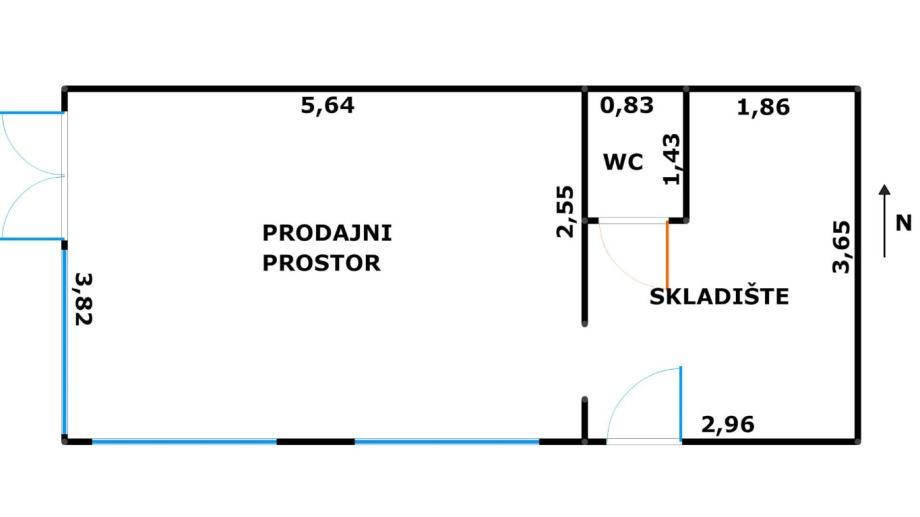 Sastoji se od većeg, prodajnog dijela i manjeg dijela (skladišta/ureda) s wc-om, površine 10m2.