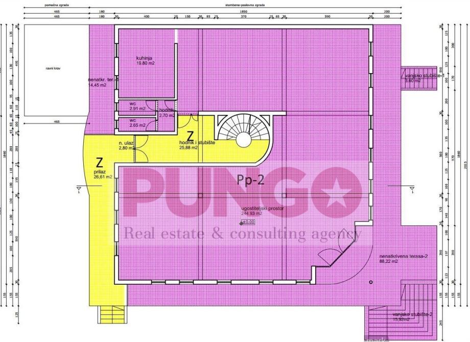 Višenamjenski prostor površine 272,99 m2, prostor u naravi ca 300 m2.
