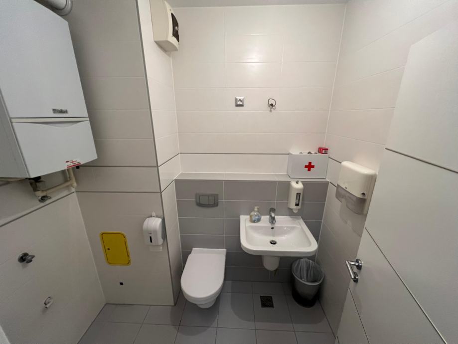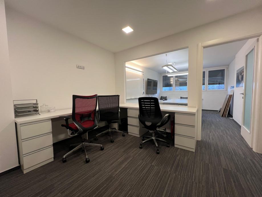 Zakup stana preuređenog u atraktivan uredski prostor. Nalazi se na prvom katu stambeno-poslovne zgrade sagrađen 2008. godine. Sastoji se od hodnika, WC-a i uredskog prostora koji je podijeljen je u dvije prostorije odijeljene staklenom stijenom i vratima. U jednoj se nalazi veliki konferencijski stol i televizor za prezentacije, a u drugoj su standardni radni stolovi i stolice. U hodniku se nalaze vitrina i ormari za odlaganje stvari i papirologije. Sve režije se plaćaju po potrošnji. Prostor se daje u zakup za uredsku djelatnost, a prednost imaju arhitektonski ili slični biroi vezani uz građevinsku djelatnost. Cijena 800 € + PDV.