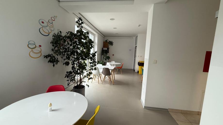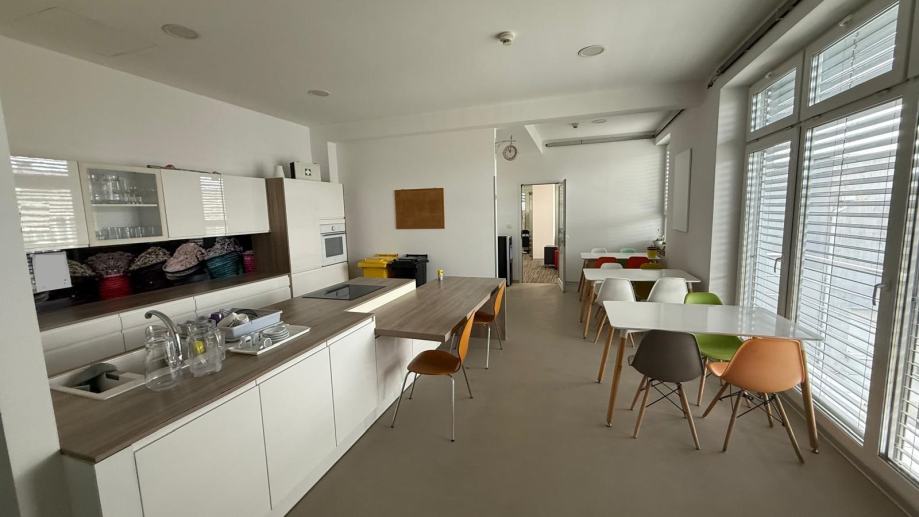 Mogućnost podjele ureda na 2 manje cjeline: bruto 219 m2 i 416 m2 s udjelima u zajedničkim prostorijama kata, sanitarija (M,Ž), opremljene kuhinje s blagovaonom, pretprostora...