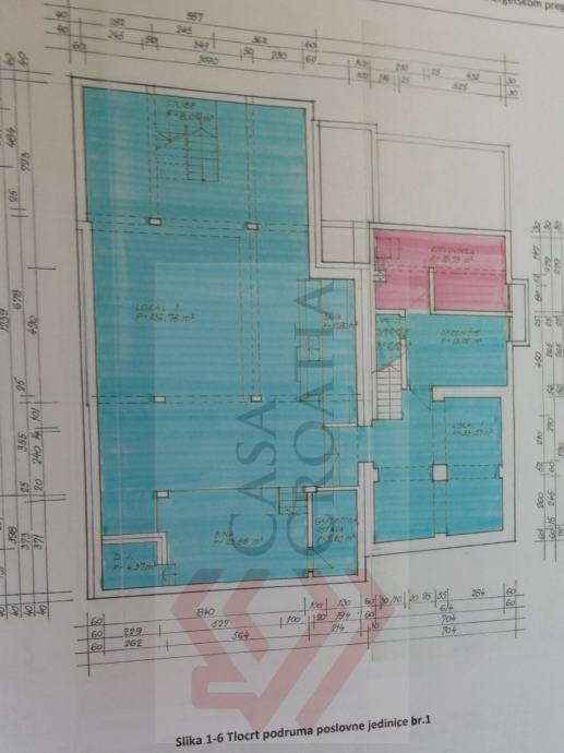 - neuređeni poslovni prostor (pogodno za restoran) – 166 m2