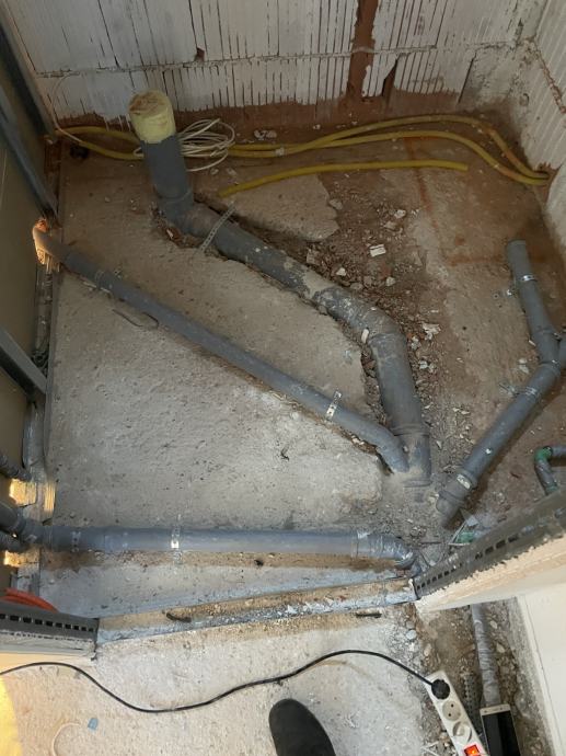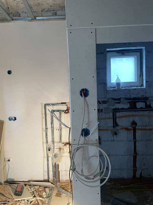 Postavljene su vodovodne i elektro instalacije te pregradni zidovi u knaufu.