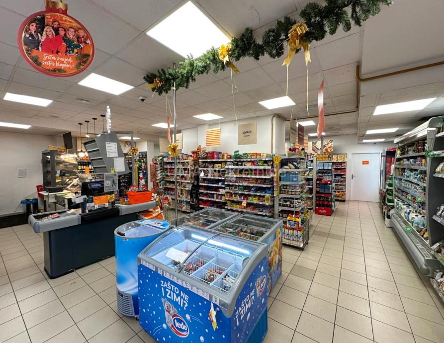 Sastoji se od prodajnog prostora ( veliki ostakljeni ulaz), ureda, skladišta (u sklopu prostora), komore, 2 sanitarna čvora, garderobe te skladišta u podrumu zgrade
