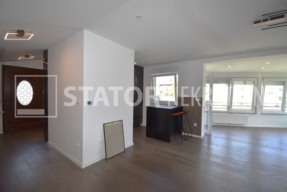 KVATRIĆ, DOMJANIĆEVA, iznajmljuje se trosobni, novouređeni prostor na 1. katu manje dvorišne zgrade, potkrovlje. Sastojie sastoji od ulaznog hodnika, na lijevo kupaonice, ravno od ulaza prostrane velike sobe i na lijevo kuhinje. Sve sa izlaskom na balkon. Desno od ulaza su još dvije sobe. 2025. godine sama zgrada je temeljno protupotresno obnovljen, hidroizolacija temelja, termo fasada, novi krov sa toplinskom izolacijom. Postavljeni su novi PWC prozori, velike klizne stijene okrenute na zapadnu stranu daju poseban ambijent, nove instalacije vode, struje i plina.. U stanu je nova kuhinja sa svim aparatima, nova kupaonica sa perilicom rublja, u hodniku ormari za odlaganje. Grijanje je etažno, plinsko, klima. U blizini je garaža Kvatrić ili Martićeva.. ODLIČAN, SVIJETAO STAN NA SAMO PAR KORAKA DO KVATRIĆA, TRAMVAJA, TRŽNICE, MARKETA, MAKSIMIR, ALI U MIRNOM OKRUŽENJEU. U CIJENU NAJMA SU UKLJUČENI REŽISKI TROŠKOVI!!