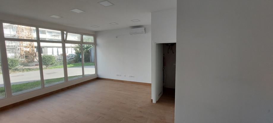 Novouređeni poslovni prostor koji se sastoji od potpuno namještene kupaonice (bojler, ljestve za grijanje, ugradbeni kotlić + wc, tuš-kabina, umivaonik), kuhinja (nenamještena, sa LED rasvjetom i pripremljenim instalacijama), uredski prostor (priprema svih potrebnih instalacija za 4-6 ljudi, LED rasvjeta, velika staklena stijena, klima uređaj, kompletna infrastruktura).