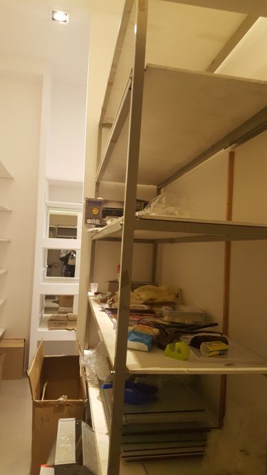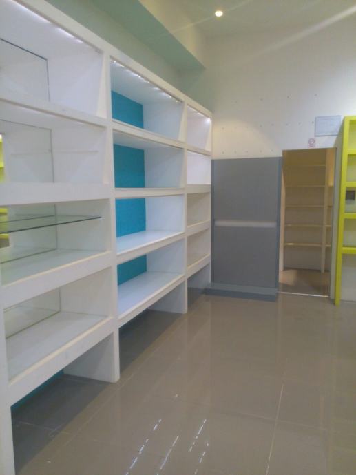 Lokal je djelomično opremljen policama uz bočne zidove, a prema potrebi možemo osigurati i dodatne police za trgovačku djelatnost.