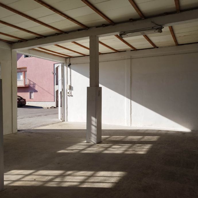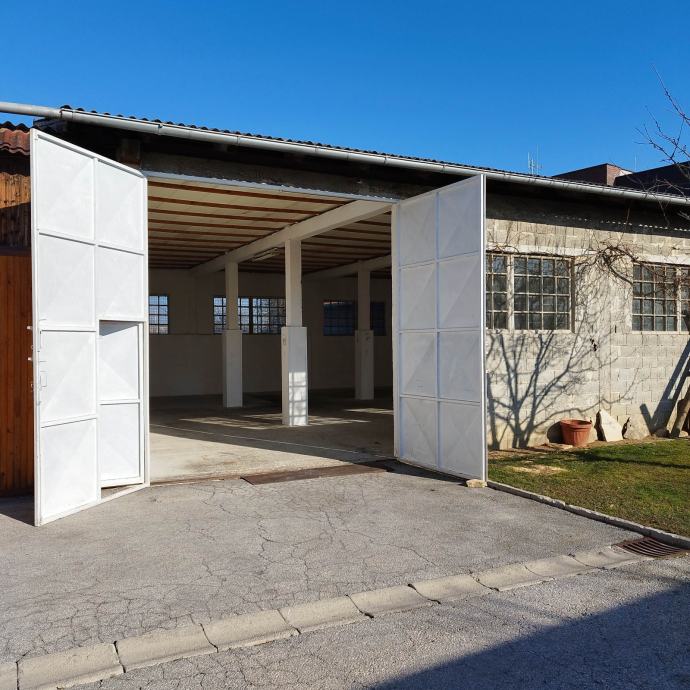 Skladišni/poslovni prostor koji se nalazi u dvorištu obiteljske kuće veličine 160m2. Visina vrata i prostora 4m, mogućnost korištenja WC koji se nalazi u dvorištu.