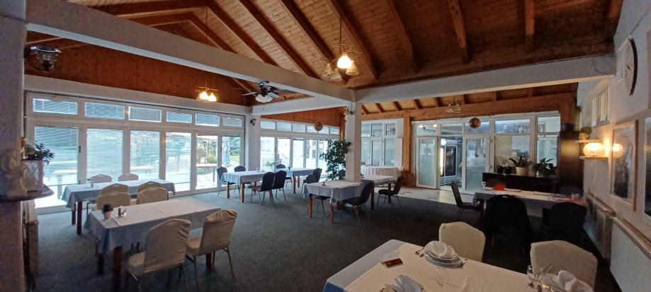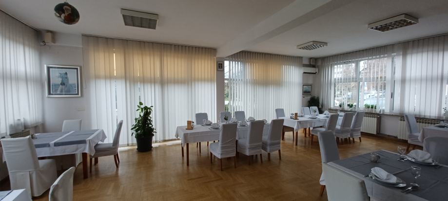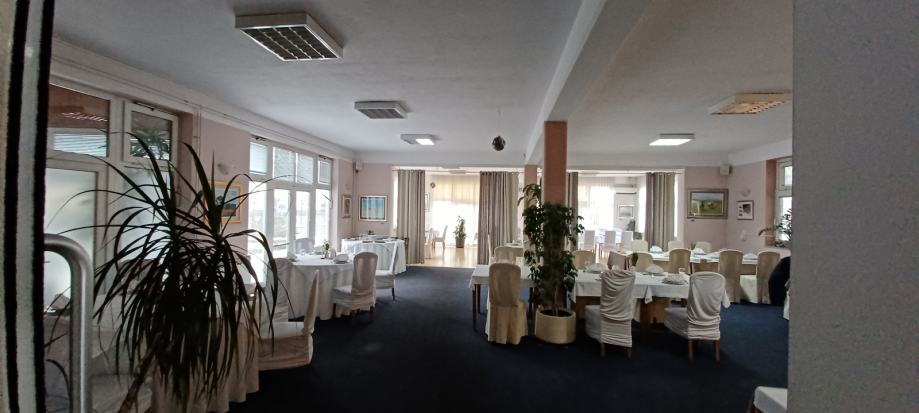 Posredujemo u prodaji ugostiteljskog objekta u funkciji. Prostor se sastoji od 578 m2 (donja etaža dvije sale kapaciteta 170 ljudi, opremljena kuhinja), 231 m2 natkrivenog vanjskog prostora (kapacitet 150 ljudi), te tavanskog prostora u roh bau verziji u kome je moguće napraviti cca 16 apartmana, te 1343 m2 dvorišta (vrt i parking).