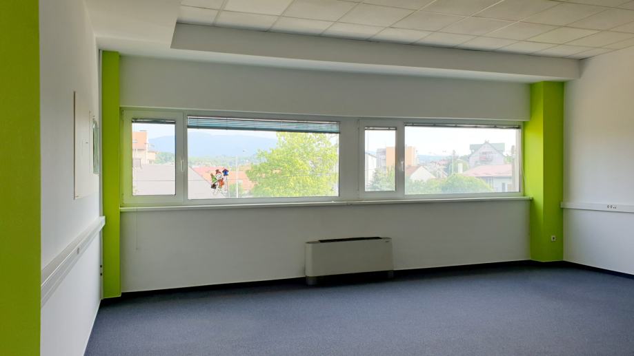 Uredski poslovni prostor od 123 m2 u Zagrebačkoj cesti 143A, Zagreb, na prvom katu s liftom, i pripadajućim parkirnim mjestima (3). Prostor je u odličnom stanju, visoke kategorije, siguran i prostran sa mogućnošću pregrađivanja po želji (trenutno prema tlocrtu, ali može biti i open space, osiguranim grijanjem i hlađenjem te provedenom internetskom i strujnom instalacijom. Prostor se nalazi u poslovnoj zgradi na etaži sa drugim zakupcima koji zajednički koriste kuhinju i sanitarni čvor.
