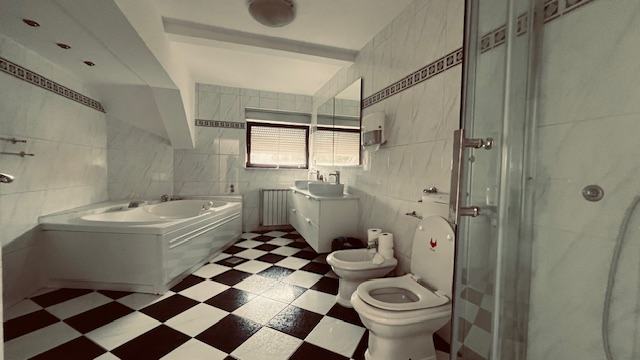 - Kuća je kompletno klimatizirana (klime Mitsubishi-inverter), plinsko etažno grijanje (novi sustav grijanja s kondenzacijskim bojlerom)
