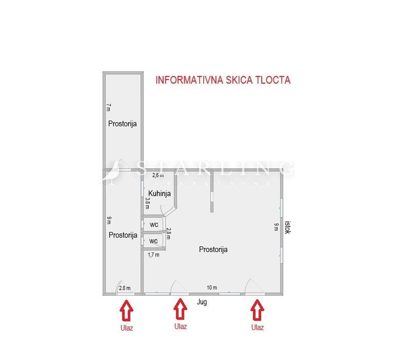 Poslovni prostor sastoji se od prostranog open-space prostora, dvije prostorije, kuhinje i dva wc-a.