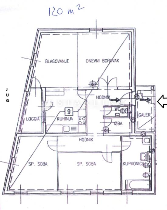 Prostor se sastoji od 3 prostorije, kupaonice, wc-a, spremišta i lođe.