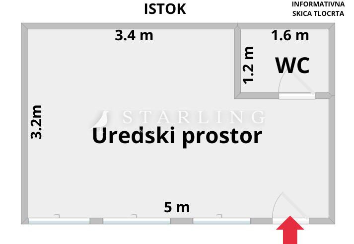 Poslovni prostor sastoji se od uredske prostorije i odvojenog wc-a, a trenutno je prilagođen uredskoj namjeni, no može se lako prilagoditi širem spektru djelatnosti.