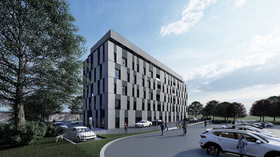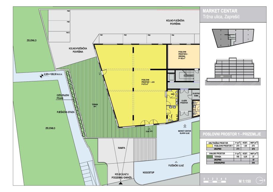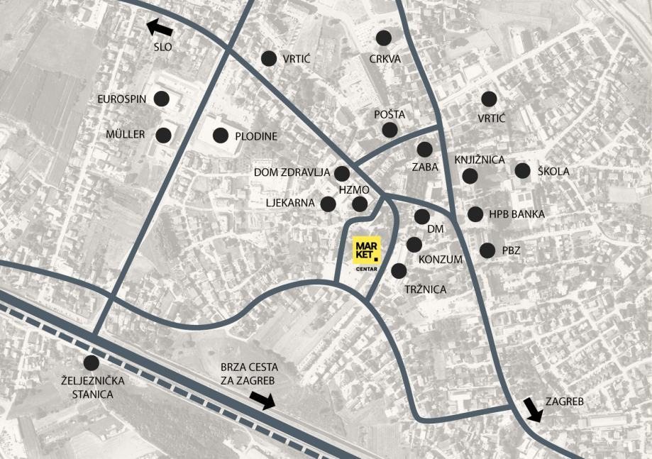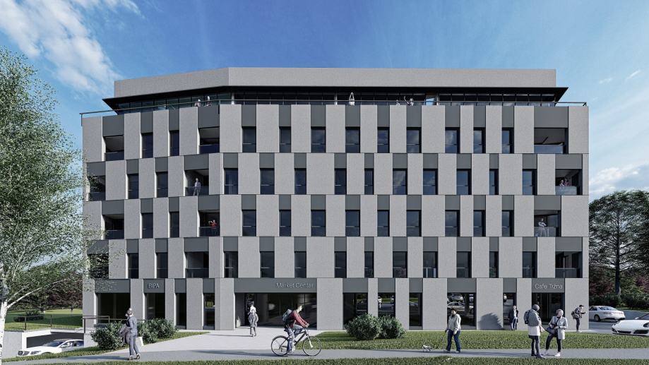 Zgrada se nalazi u mirnoj, ali centralno pozicioniranoj Tržnoj ulici u Zaprešiću nasuprot gradske tržnice u uređenom i urbaniziranom okolišu. U zgradi su ukupno 34 stana, a glavni ulaz u zgradu je s pješačkih površina uz Tržnu ulicu. U prizemlju zgrade smiješteni su poslovni prostori koji komplementiraju uslužni karakter obližnje tržnice i dodatno zadovoljavaju potrebe stanara svjom blizinom i pristupaćnošću unutar same zgrade. Poslovni prostor nalazi se u prizemlju, ima trostranu orijentaciju, a glavna orijentacija mu je na jug. Prostor ima veliku terasu i vlastiti parking, a nalazi se preko puta tržnice. Postoji mogućnost uzimanja skladišnog prostora.