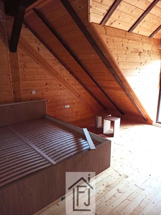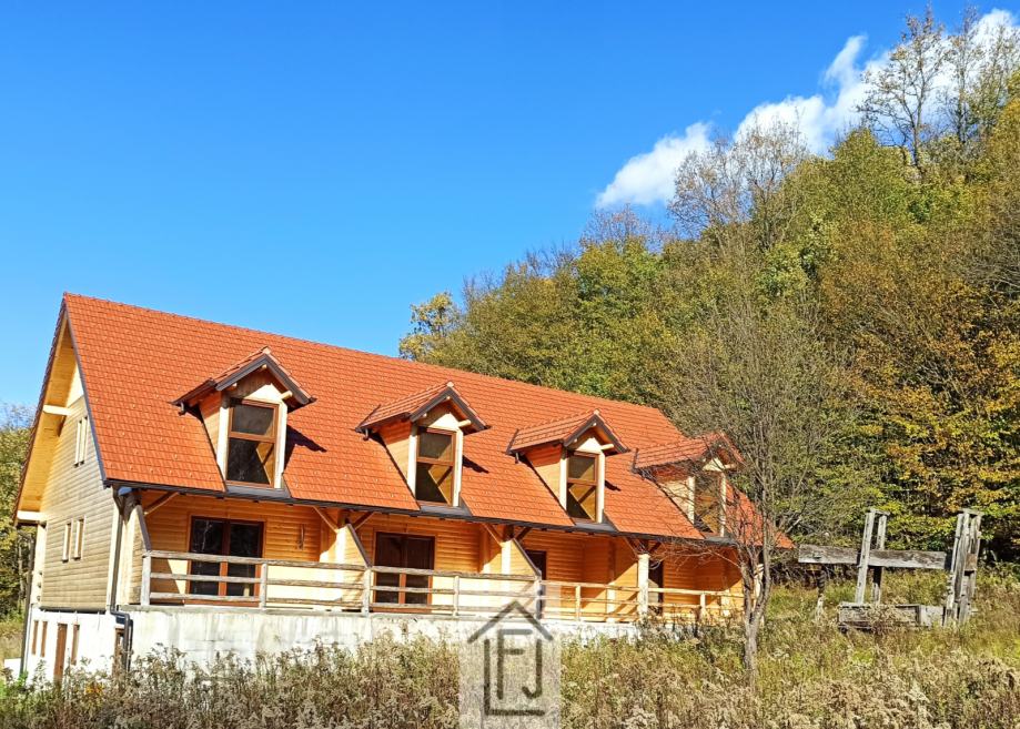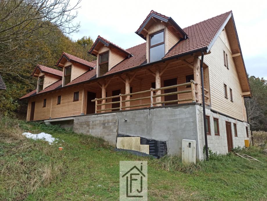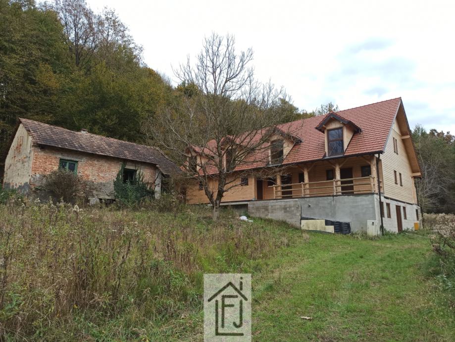 Apartmanska kuća s parcelom za gradnju kampa! Veličanstveno stopljena s prirodom koja ju okružuje, 90% dovršena apartmanska kuća od drveta, novogradnja, tlocrtne površine 275 m2, s četiri velika apartmana na dvije etaže, od kojih svaki ima kuhinju, blagovaonu, dnevni boravak, spavaću sobu i sobu za djecu koja se može prenamijeniti po želji i potrebi i vlastitu kupaonu s tušem. Gotovo potpuno namještena. U podrumskom dijelu postoji i prostor koji može biti zaseban stan ili zajednički prostor za druženje. Svaki apartman ima svoju terasu s umirujućim pogledom na predivnu šumu i naše brege. Zgradu okružuje cca 18500 m2 zelenila i šume. Mirna dolina daleko od vreve, ljeti u hladu šume, zimi daleko od hladnih vjetrova. Centralno grijanje na plin. Uz nju stoji i starija kuća koja se može prenamijeniti u mali restoran ili zasebnu stambenu građevinu. Ogroman prostor pruža bezbroj mogućnosti, od robinzonskog turizma do raznih sportskih aktivnosti, aktivnosti vezanih u vinsku cestu, toplice... Nekretnina je vrlo intimna i garantira apsolutnu privatnost, a dovoljno blizu svih sadržaja tako da joj je sve lako dostupno. Nekretnina za sposobne poduzetnike s vizijom! Obratite nam se s povjerenjem bez ikakvih obaveza! Cijena za dogovor!