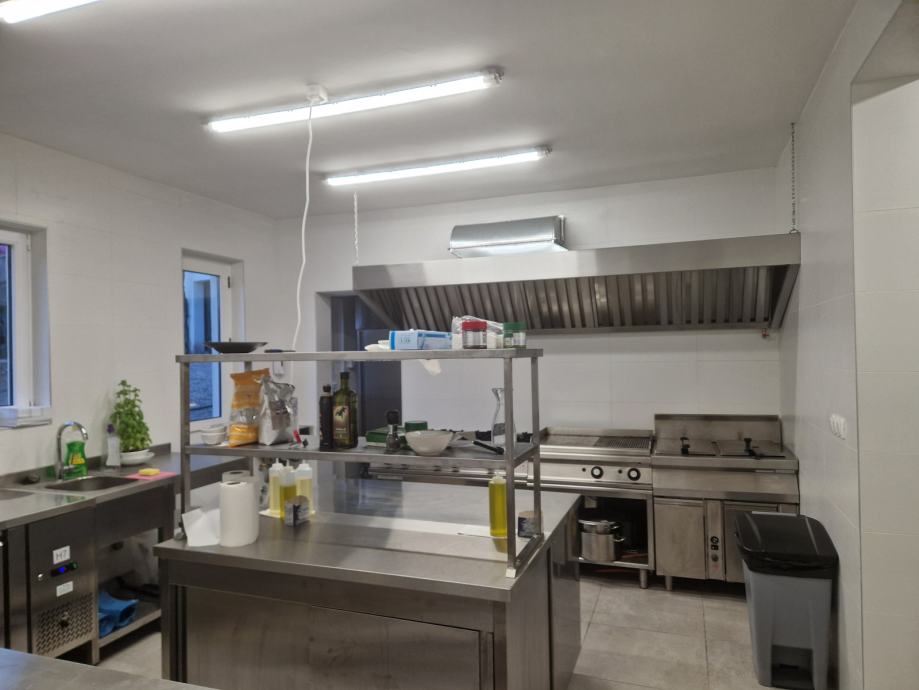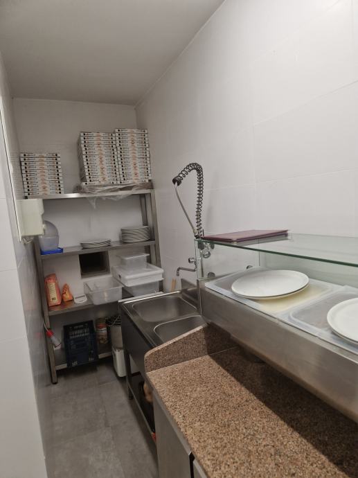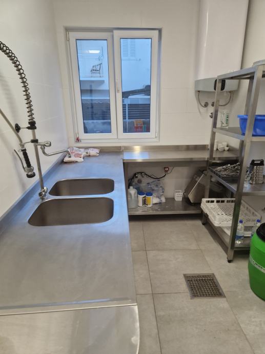 Površina vanjske terase je 350m² a unutarnji prostor restorana sa šankom, kuhinjom i pomoćnim prostorijama je površine 150m².