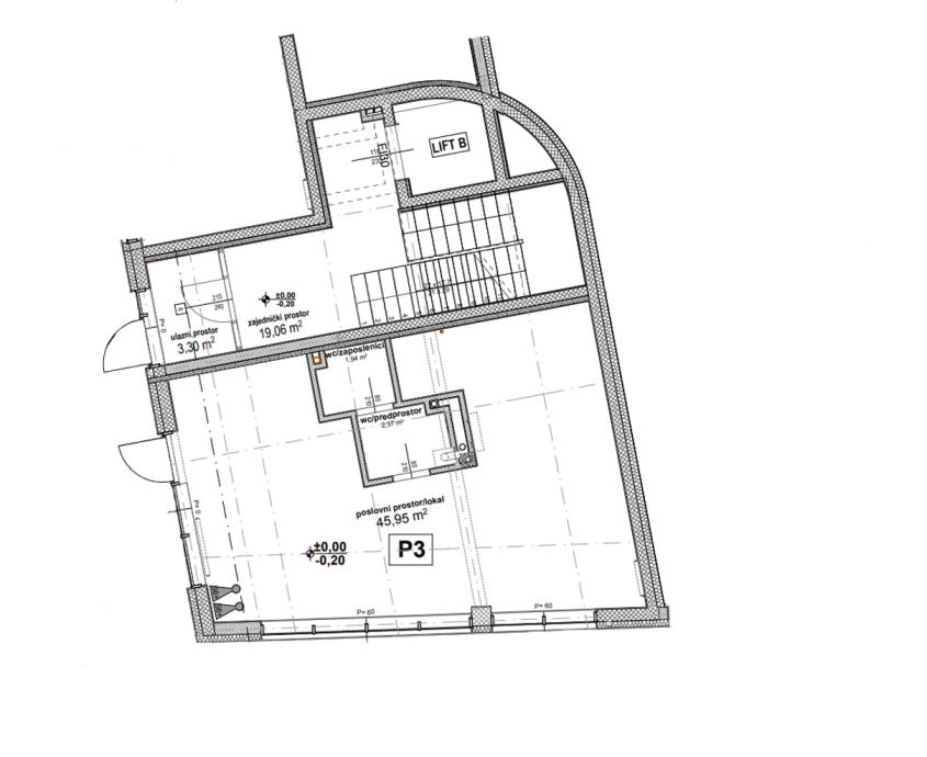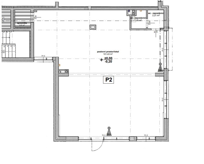 4. P05 (E-19) / 54,56 m2 - cijena: 1.850 Eur/m2 (mogućnost spajanja u veliki prostor (195,05 m2) sa P04)