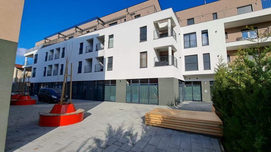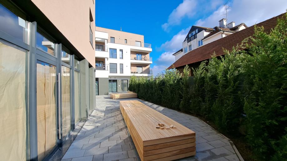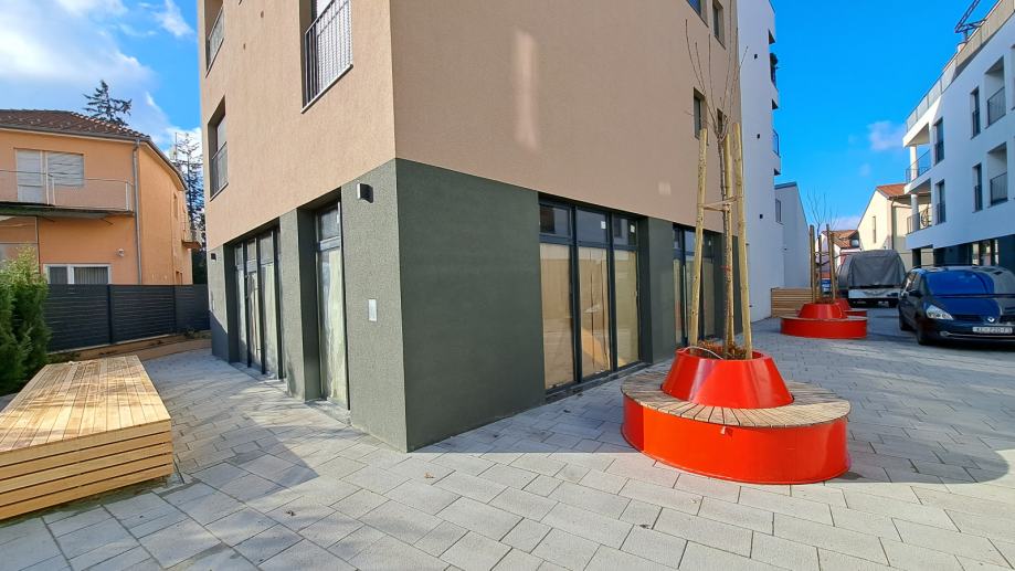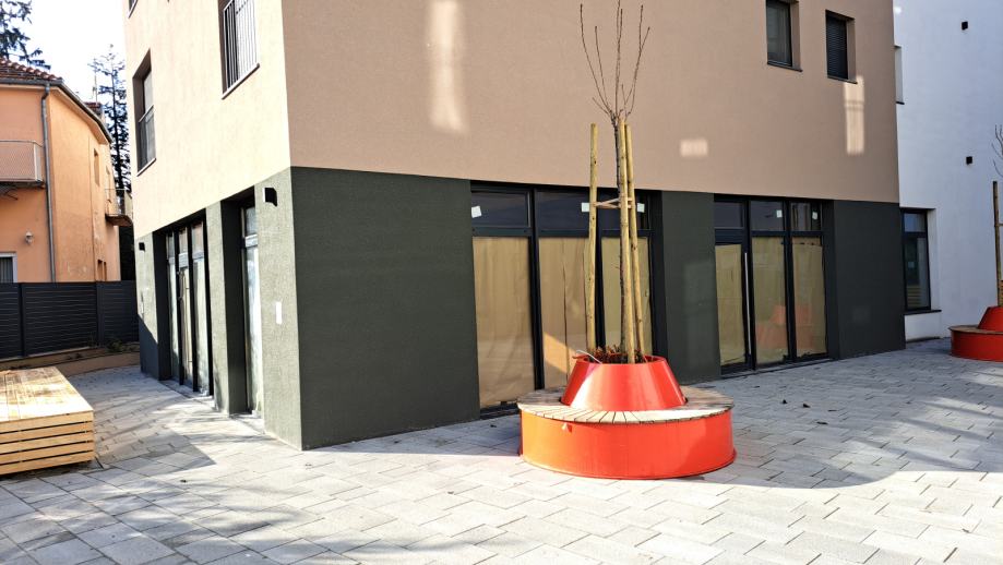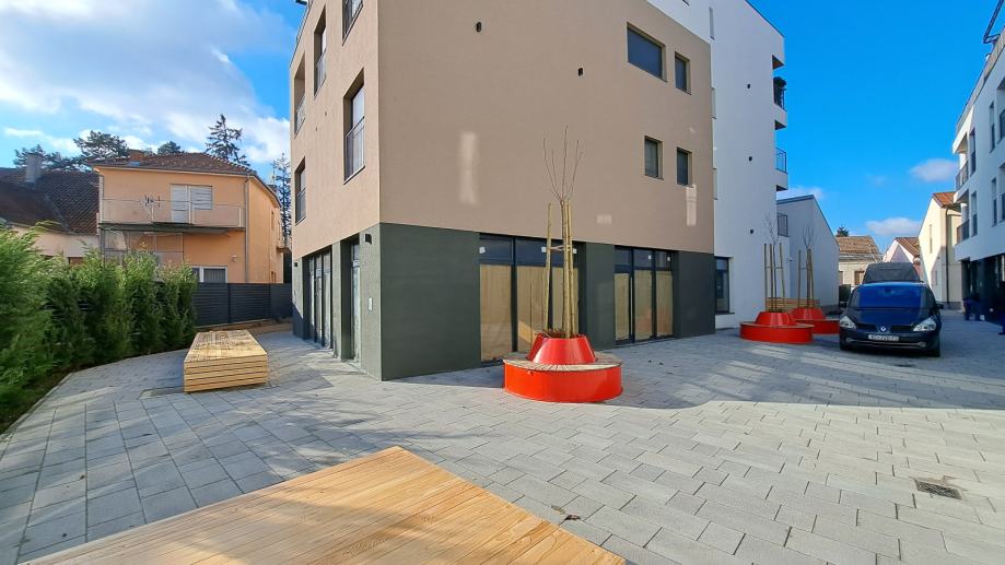 Podno grijanje, odličan raspored, laka dostupnost i veliki stakleni izlozi čine ove prostore posebnim. Neposredno u blizini nalaze se parkiralište, banke, vrtić, gradski park te sve gradske strukture. Novouređeni trg sa klupama ispred ulaza u stambeni kompleks te podzemna garaža i vanjska parkirna mjesta čine ovu lokaciju odličnom za vidljivost i promociju poslovanja.