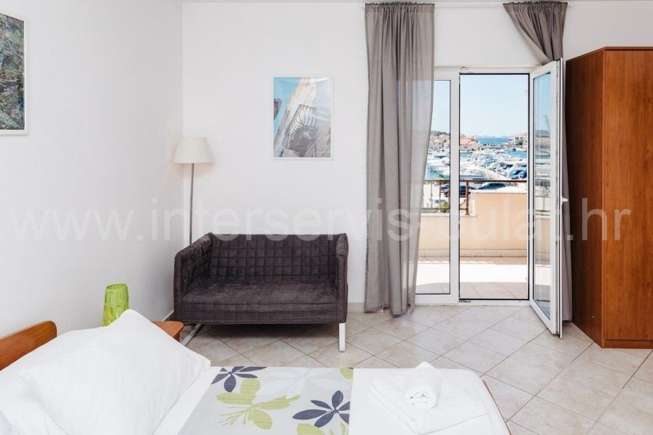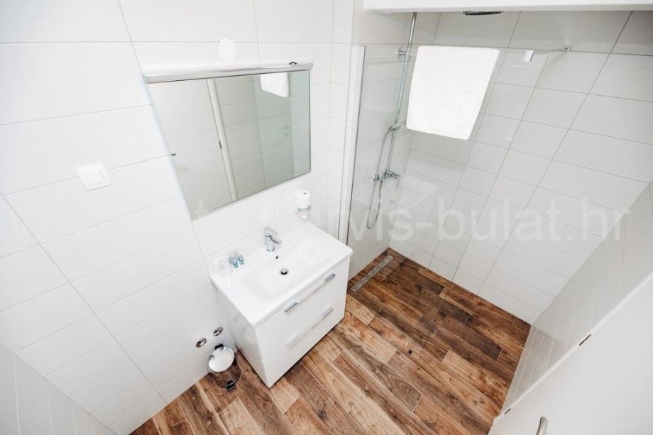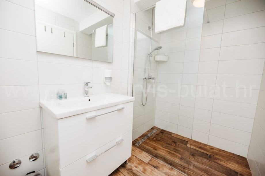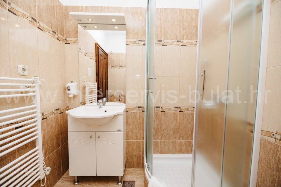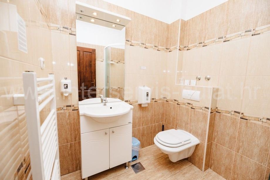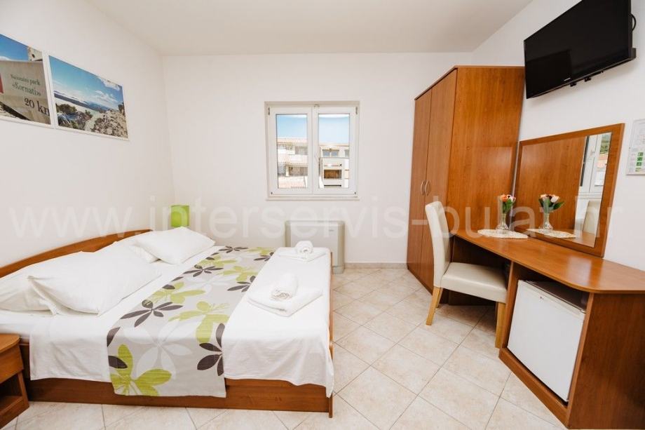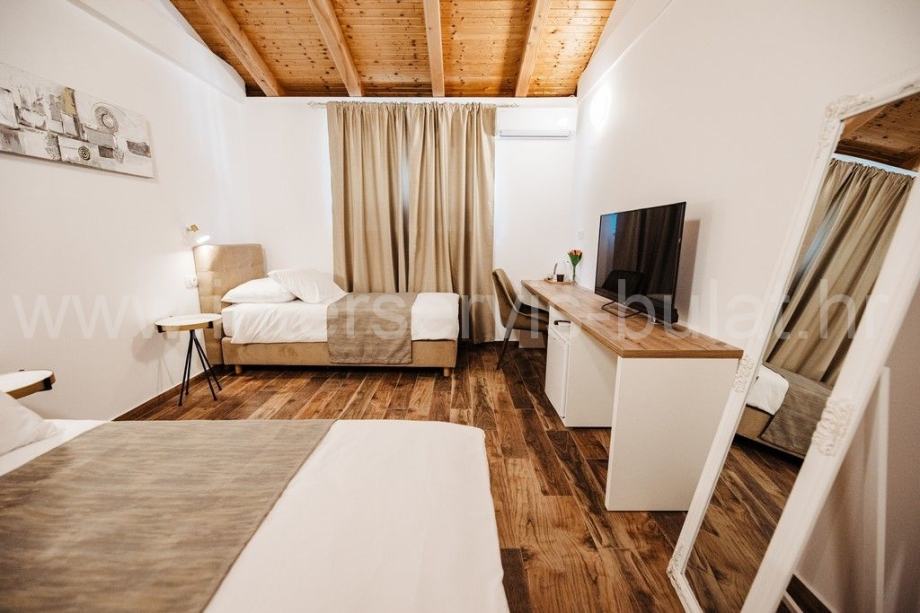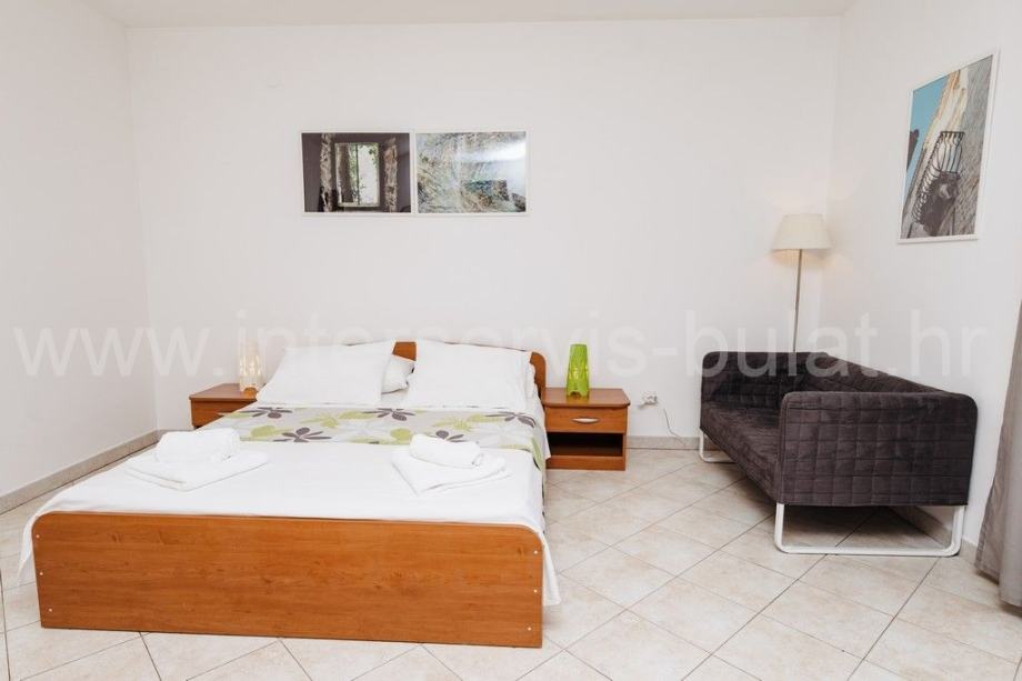 Kuća raspolaže sa unutarnjim stepeništem i liftom kojima se penjemo na tri kata gdje na svakom nalazimo po pet spavaćih soba, svaka s balkonom i kupaonicom. Cijela nekretnina je uređena, održavana i sobe se iznajmljuju kroz cijelo ljeto.