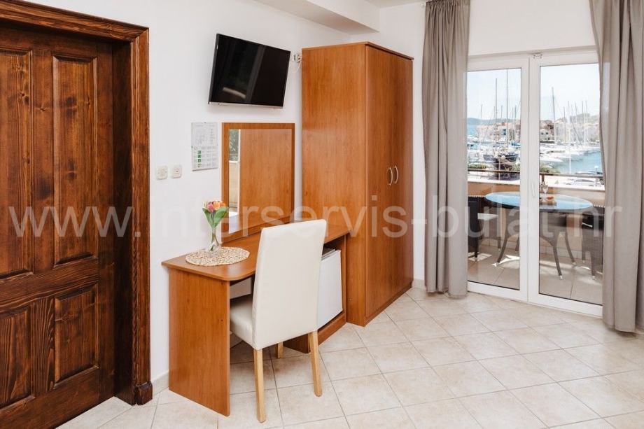 U centru Tribunja smjestila se vila, poslovno-stambeni objekt, koji funkcionira kao mini hotel. Sastoji se od prizemlja i tri kata, ukupne korisne površine 848m2. U prizemlju je smještena recepcija, hodnici sa sanitarnim čvorovima, kotlovnicom, praonica rublja, soba za peglanje, nekoliko spremišta, te kotlovi za toplu vodu, spojeni sa solarnim pločama.