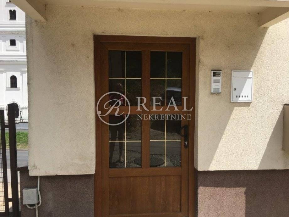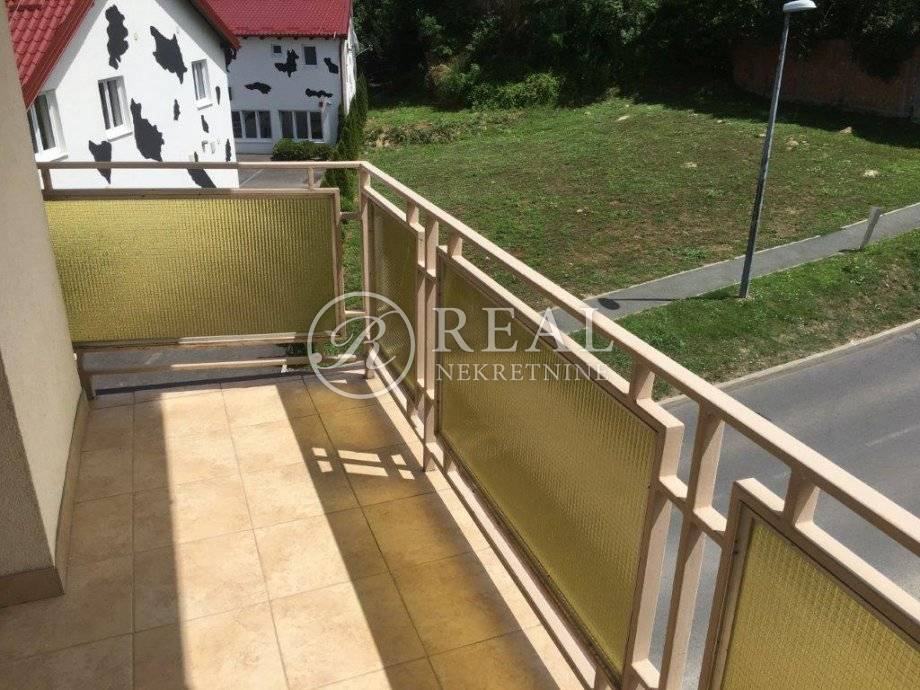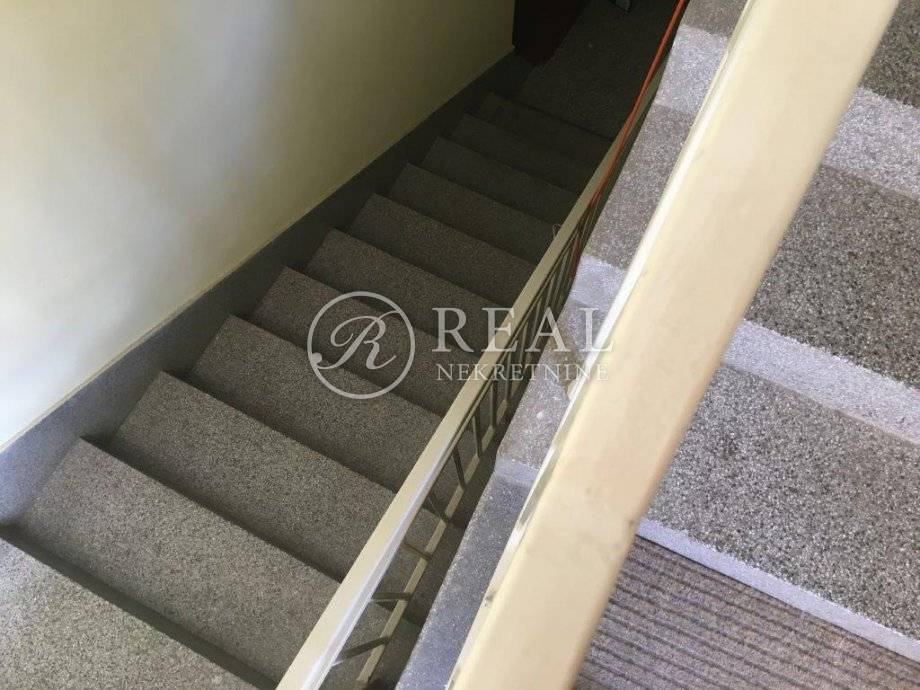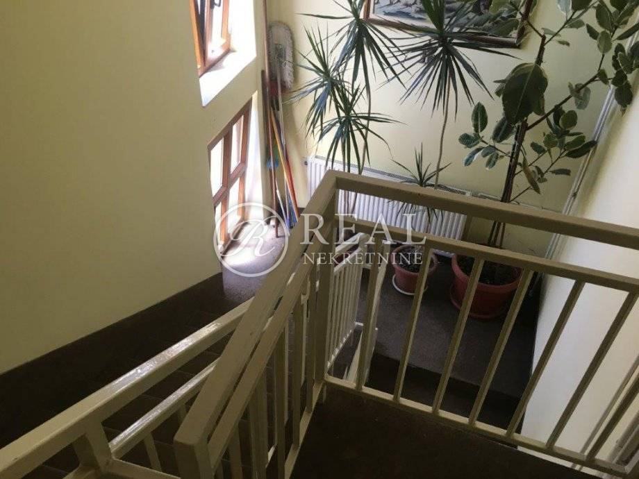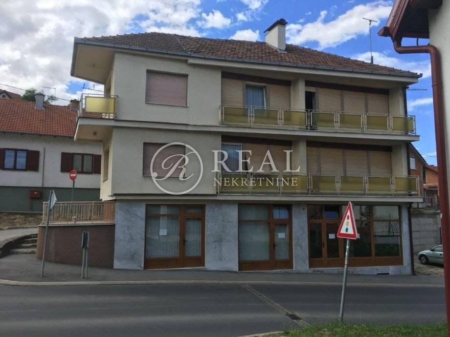 Poslovni prostori su u prizemlju zgrade i imaju tri ulaza od ulice a sastoje se od tri prostorije, koje imaju izloge u cijelom pročelju. Svaka prostorija ima svoj ulaz od ulice i iz kuće. Tim poslovnim prostorima pripadaju dva sanitarna čvora, jedan s jedne strane zgrade a drugi s druge strane. Izlozi i vrata do ulice su pvc, na podovima su pločice, centralno plinsko grijanje, voda i struja je odvojena na dvije jedinice. Ukupne veličine su oko 70m2 unutarnjeg korisnog prostora na prizemlju. Ispod jednog prostora je podrum od 27 m2 uređen s pločicama na podu. Ulaz u zgradu je s druge strane ulice u kojem je stubište s kojeg se ulazi u sve od podruma, poslovnih prostora, stanova i tavana. Na prvom katu je stan s hodnikom, novom kupaonicom s tuš kabinom, dnevni boravak s blagovaonicom, kuhinjom i malom ostavom u koju se ide iz kuhinje i dvije spavaće sobe. Isti raspored i broj prostorija je i na drugom katu. Osim što drugi kat nema ostavu a na špicu zgrade je balkon od 5 m2. Dužinom oba stana cca 8 metara su balkoni. Stanovi su korisnog stambenog dijela svaki cca 60 m2. Cijela zgrada je neobičnog oblika i vrlo je upadljiva. Kako je zgrada neouobičajena tako su i prostorije u stanovima malo neuobičajene i daju jednu posebnu ljepotu svakoj prostoriji. Stolarija u stanovima je drvena s roletnama. Na podovima je laminat i keramika, centralno grijanje je plinsko. Vlasništvo je 1/1 bez tereta. Zgrada ima uporabnu i ostale dozvole. Blizinu svega ne treba ni navoditi.