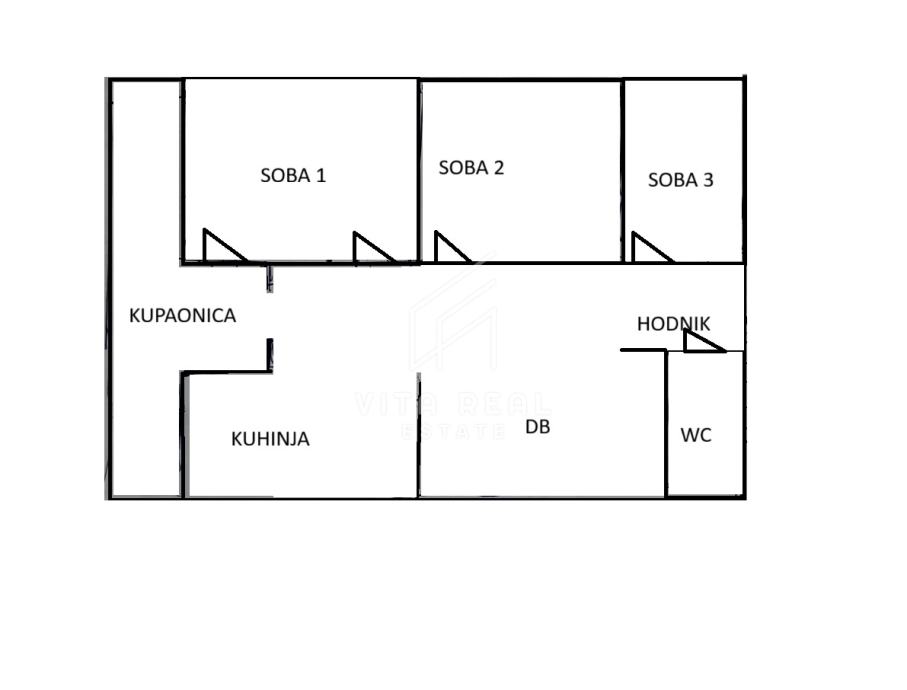 Stan zahtijeva potpunu renovaciju, a trenutno su prekidači isključeni iz struje. Ova okolnost pruža budućem vlasniku mogućnost da interijer uredi u potpunosti prema vlastitim željama i standardima.