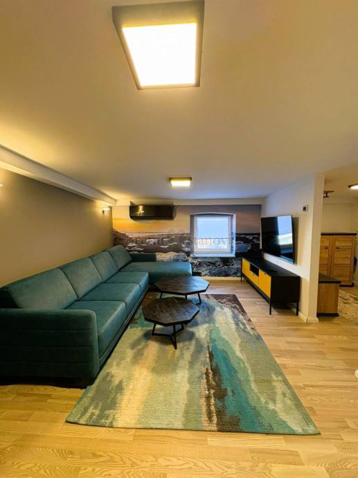 Stan se nalazi u Mihanovićevoj ulici, te je smješten u potkrovlju održavane zgrade. Nekretnina je uređena s naglaskom na kvalitetu, udobnost i moderan dizajn. Opremljen je vrhunskim namještajem, kvalitetni materijalima i modernom rasvjetom. Također, sprovedeno je i podno grijanje za dodatni komfor budućeg najmoprimca.