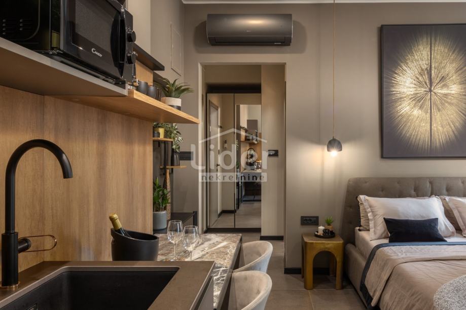 Iznajmljujemo prekrasnu garsonijeru od 32m2 dizajnerski uređen pomno biranim materijalima i namještajem.