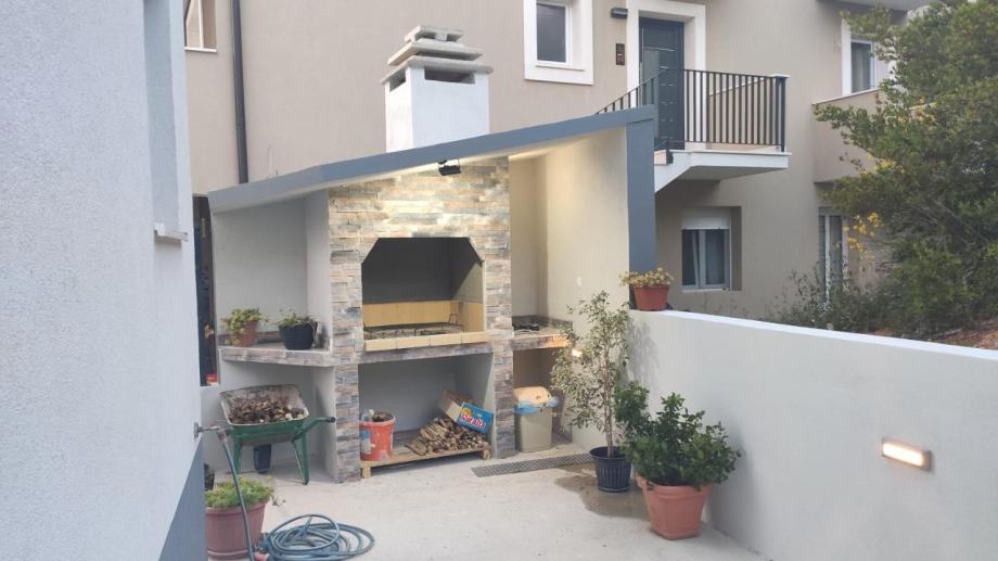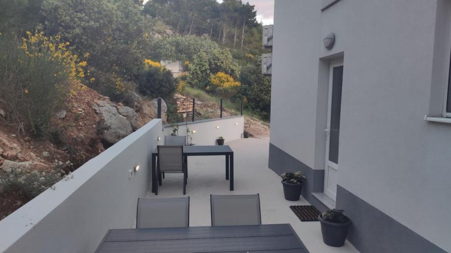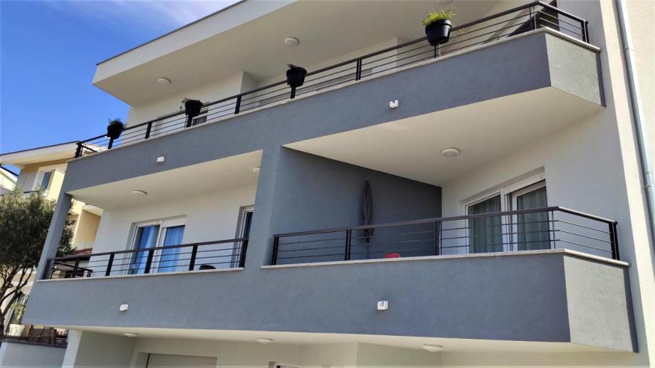 Na prvom katu smješten 1 studio apartman i prostran jednosobni apartman. Oba apartmana imaju zasebne balkone koji pružaju pogled na more. U sklopu prvog kata sa sjeverne strane se nalazi izlaz na terasu koja je opremljena sa roštiljem i idealna je kao prostor za druženje, na terasi je također moguća instalacija jacuzzi-a.