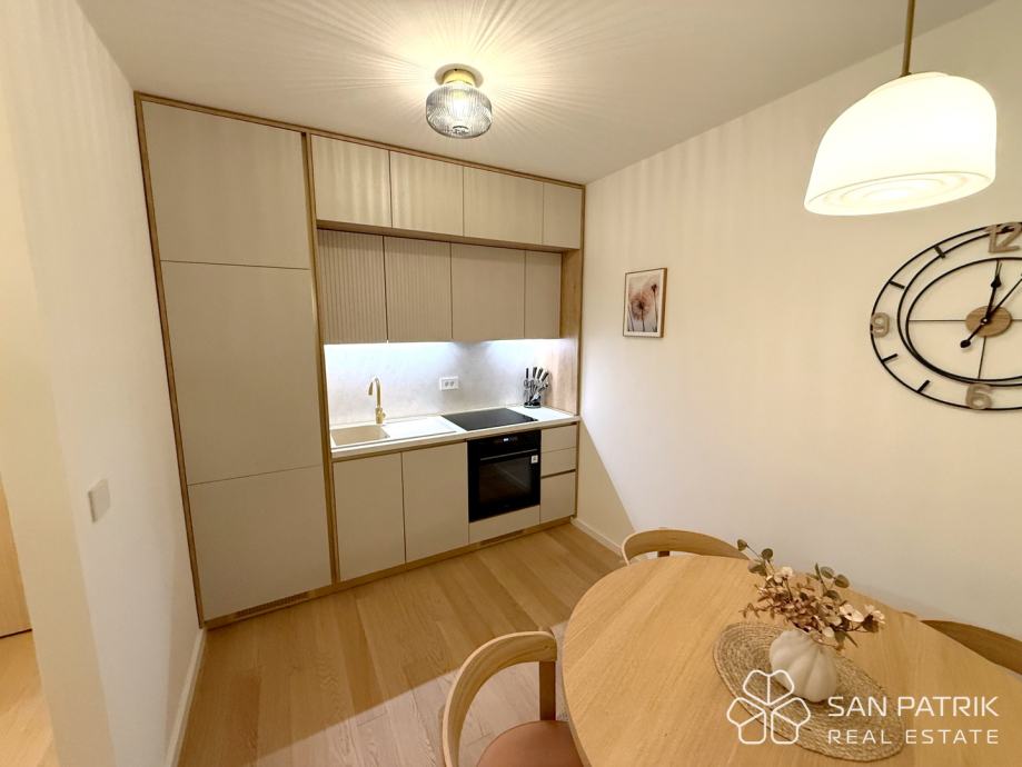 Stan je potpuno nov i nitko nije živio u njemu, a prodaje se u potpunosti namješten modernim i pažljivo biranim namještajem.