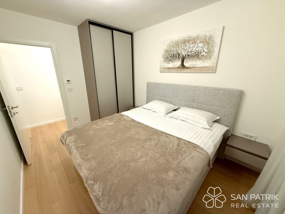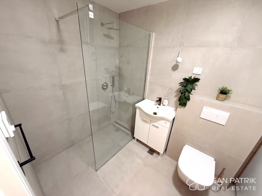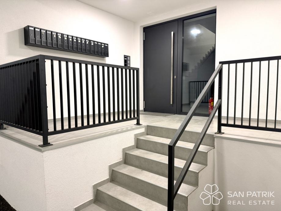 Stan ima odličan raspored i sastoji se od ulaznog hodnika, prostranog dnevnog boravka s kuhinjom i blagovaonicom, dvije udobne spavaće sobe, moderne kupaonice i natkrivene terase. Zatvorena stambena površina iznosi 58,01 m2, a natkrivena terasa od 15.70 m2 pruža ugodan prostor orijentiran prema sjeverozapadu. Stan ima vanjsko parkirno mjesto PM10 i prostranu ostavu u podrumu površine 6,75 m2.