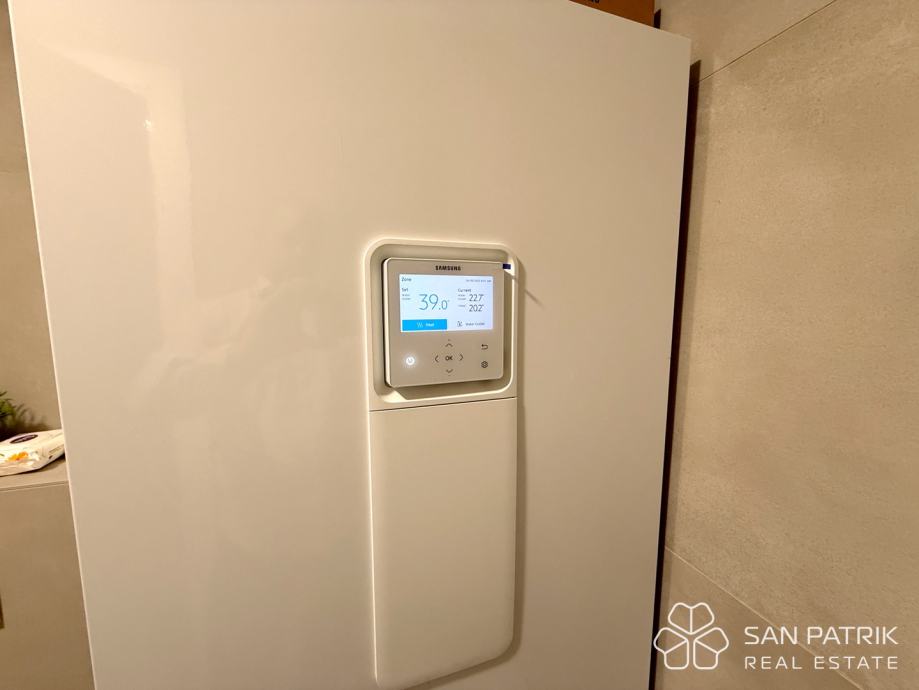 Grijanje je podno riješeno dizalicom topline brenda Samsung uz alumininsku stolariju, što osigurava energetsku učinkovitost i niske troškove. Zgrada je smještena u mirnoj ulici, uvučena 100 metara od glavne prometnice, što osigurava visoku razinu privatnosti i mirno okruženje. Ključni sadržaji nalaze se u neposrednoj blizini, među njima autobusna stanica udaljena 220 m i trgovina Kaufland na 450 m.