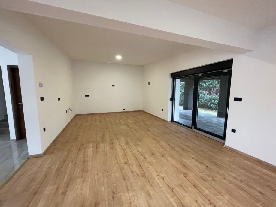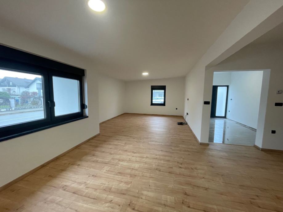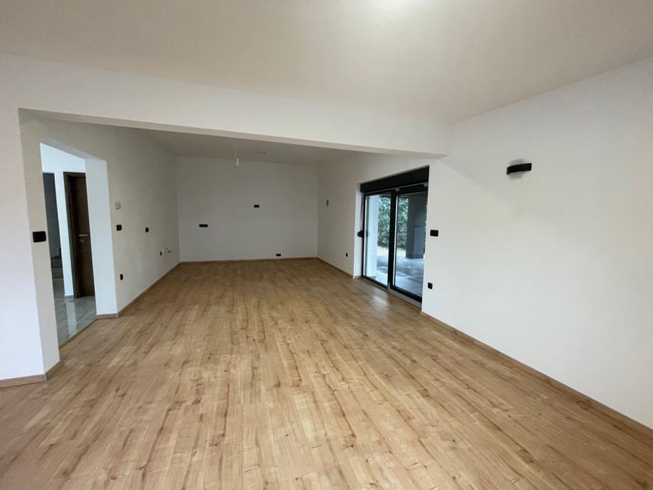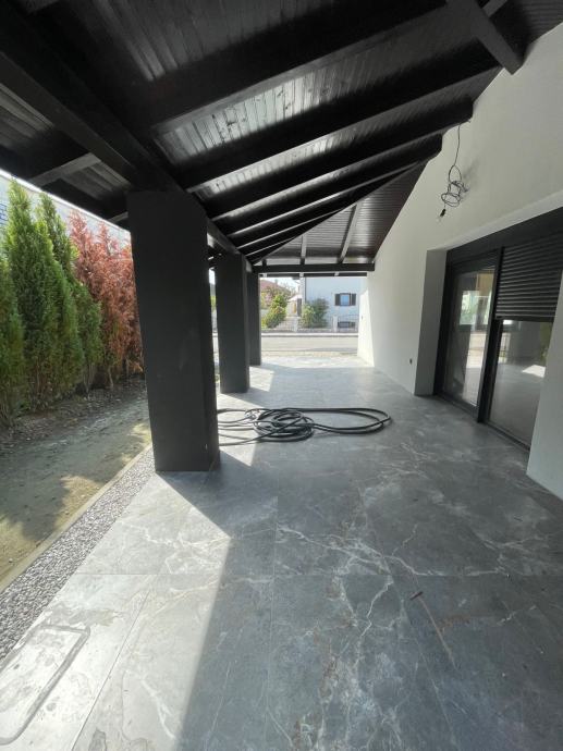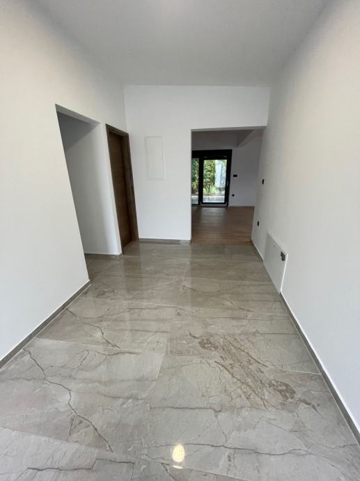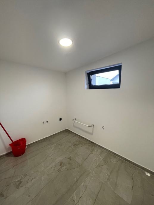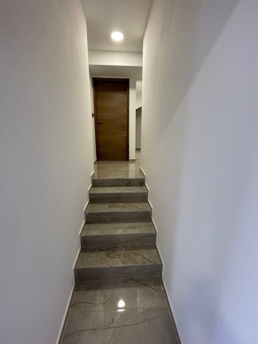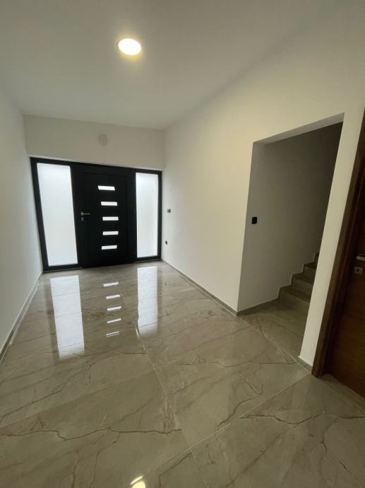 Prizemlje - ulaz, hodnik, open space kuhinja s blagovaonom, dnevnim boravkom s izlazom na terasu i dvorište, stepenice, kupaonica (walk in tuš), te tri spavaće sobe.