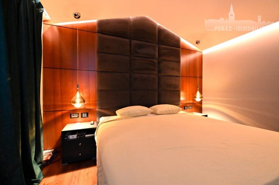Glavna spavaća soba i dječja soba imaju velike krevete (202x200). U glavnoj spavaćoj sobi se nalaze noćni ormarići sa brončanim noćnim lampama Lodes Sky Fall. Zidni moduli kontroliraju rasvjetu, grijanje/hlađenje, zavjese i rolete.
