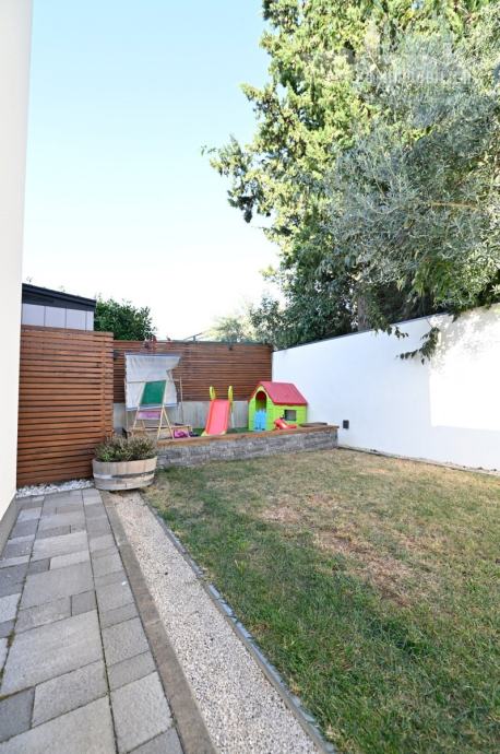 Kuća je izgrađena 2018. godine, odlikuje se pomno izrađenim dizajnom i prostire se na stambenoj površini od 84,08 m2 + pažljivo uređeni vrt od cca. 350 m2.