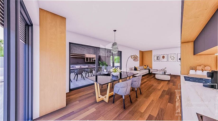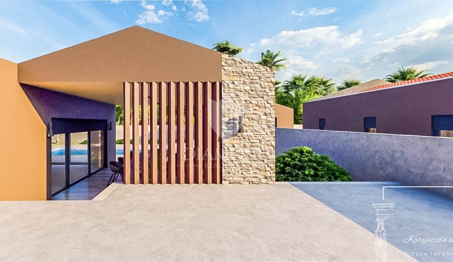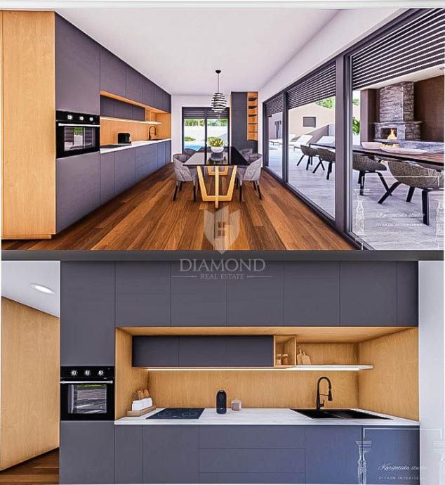 Sa suvremenim dizajnom i pažljivo odabranim materijalima, ova kuća jamči visoku kvalitetu i dugotrajnost, pružajući vam prostor koji će zadovoljiti sve vaše potrebe i želje. Ova izuzetna kuća, potpuno opremljena i namještena do najsitnijih detalja, pruža vam neusporedivu priliku za život u skladu s prirodom, ali i za profitabilno ulaganje u turizam. Kuća se sastoji od hodnika, dvije prostrane spavaće sobe, svaka s vlastitom kupaonicom od kojih jedna ima i izlaz na terasu, wc-a, ostave, kuhinje i blagovaonice te dnevnog boravka s izlazom na prekrasnu terasu, idealnu za opuštanje i druženje. Podno grijanje na struju je u cijeloj kući. U dvorištu kuće nalazi se ljetna kuhinja, idealna za pripremu ukusnih obroka na otvorenom. Osim ljetne kuhinje, u dvorištu ćete pronaći bazen te dodatni pomoćni objekt, koji vam pruža dodatni prostor za skladištenje. Pored navedenog kuća ima i vlastita 2 parkirna mjesta. Planirani završetak izgradnje kuće je do kraja 2024. godine.