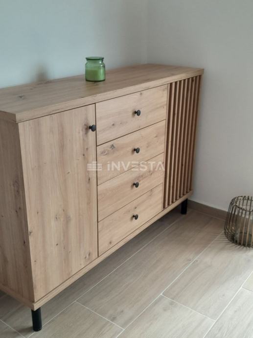 Trenutno je stan slikan prilikom montaže namještaja ali uskoro će se vidjeti potpuno namješten i opremljen ovaj simpatičan stan idealan za boravak tijekom turističke sezone ili kao nekretnina za stalan boravak.