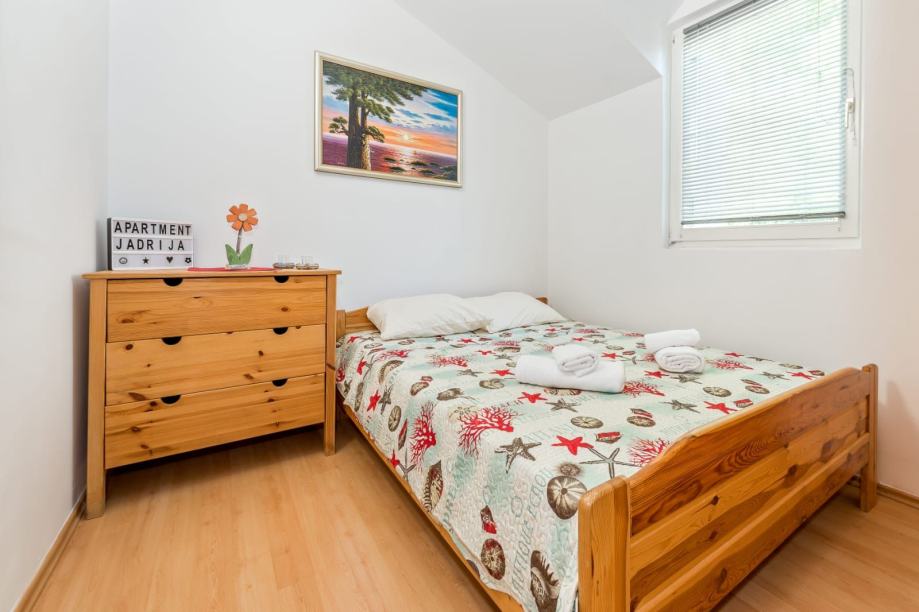 Potpuno uređena dvojna kuća u trećem redu do mora i plaže (50 m), s dva stana na Jadriji ukupne stambene stambene površine 75 m2. U prizemlju se nalazi dvosoban stan (dvije spavaće sobe, kuhinja, blagovaonica, kupaonica, wc, spremište ispod stepenica, te prostrana terasa. Vanjske stepenice vode na gornju etažu koja se sastoji također od dvosobnog stana: dvije spavaće sobe hodnik, kupaonica, dnevni boravak, kuhinje i blagovaonice te prostrana terasa. S gornjeg kata se pruža pogled na more. Kuća je kvalitetno građena, postavljena je PVC stolarija, i u potpunosti je opremljena , te joj pripada i jedno parkirno mjesto, kao i roštilj u dvorištu prizemne etaže.Dokumentacija uredna, vlasništvo čisto, posjeduje i uporabnu dozvolu . Kontakt agent: Joško Gojanović, +385992274227