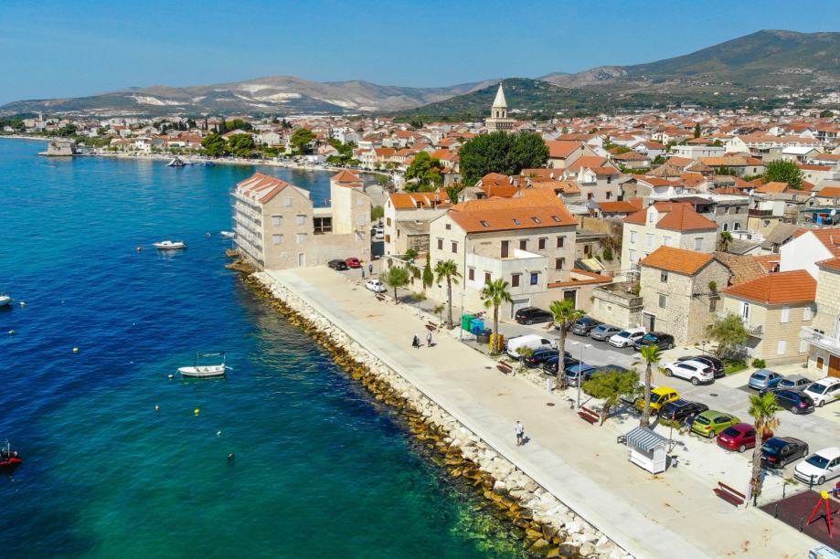 Izvrsna lokacija na glavnoj šetnici omogućava posjetiteljima pristup bogatoj povijesti, kulturi i prirodnim atrakcijama grada. Zahvaljujući južnoj orijentaciji te dominantnoj poziciji, tek nekoliko koraka od mora, Castelmare Rezidencija pruža spektakularan pogled na Kaštelanski zaljev.