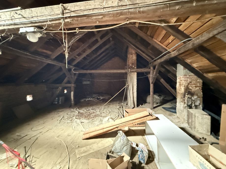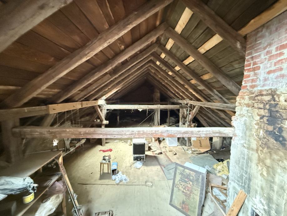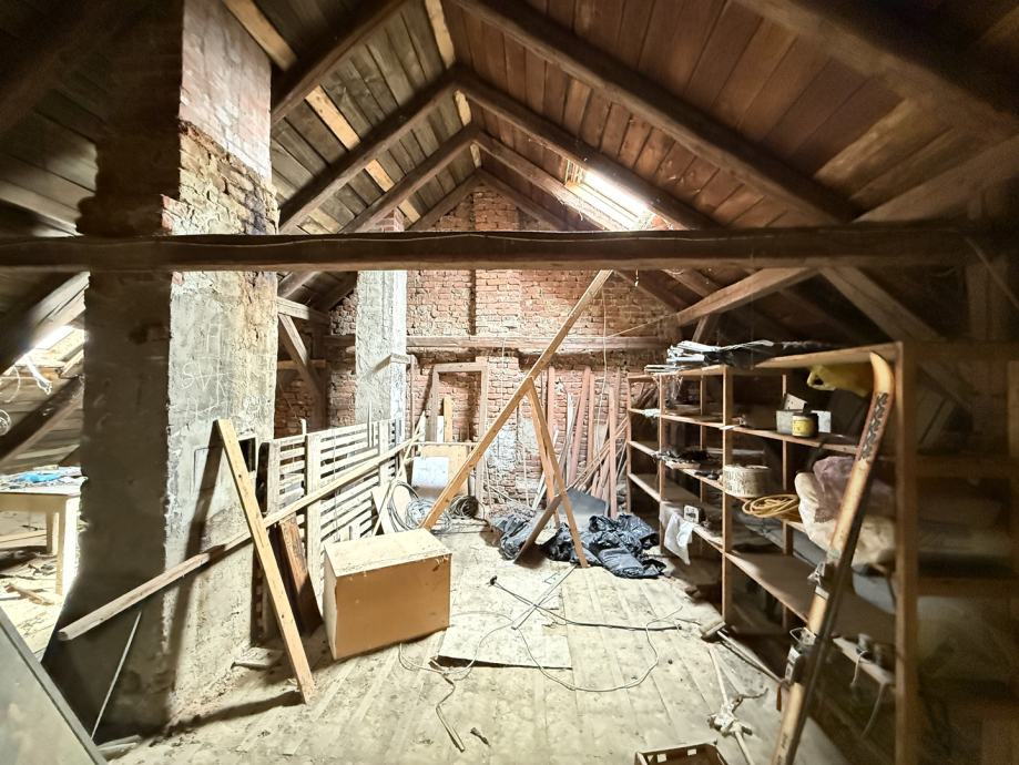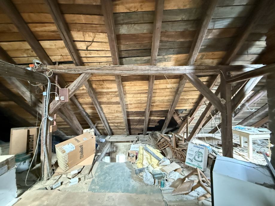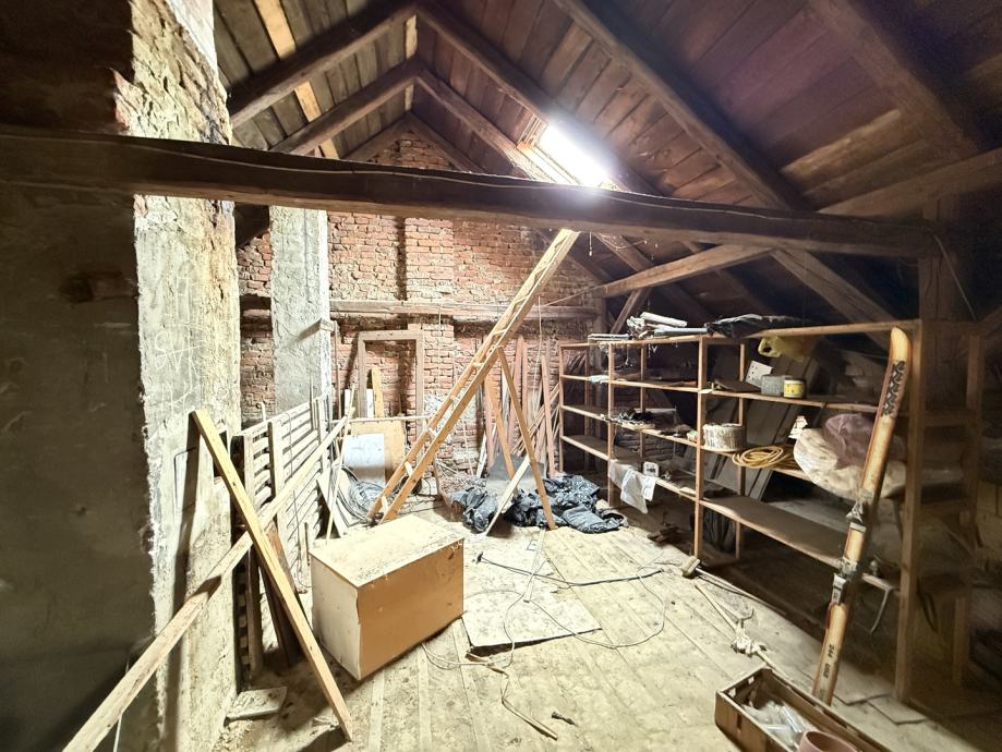 Potkrovlje, iako trenutno neuređeno, nudi izniman potencijal. Ukupne površine 170,00 m2, od čega je 119,00 m2 korisne površine s visinom stropa većom od 2 metra idealno za uređenje dodatnog stambenog prostora, ateljea ili više manjih jedinica.