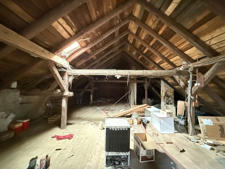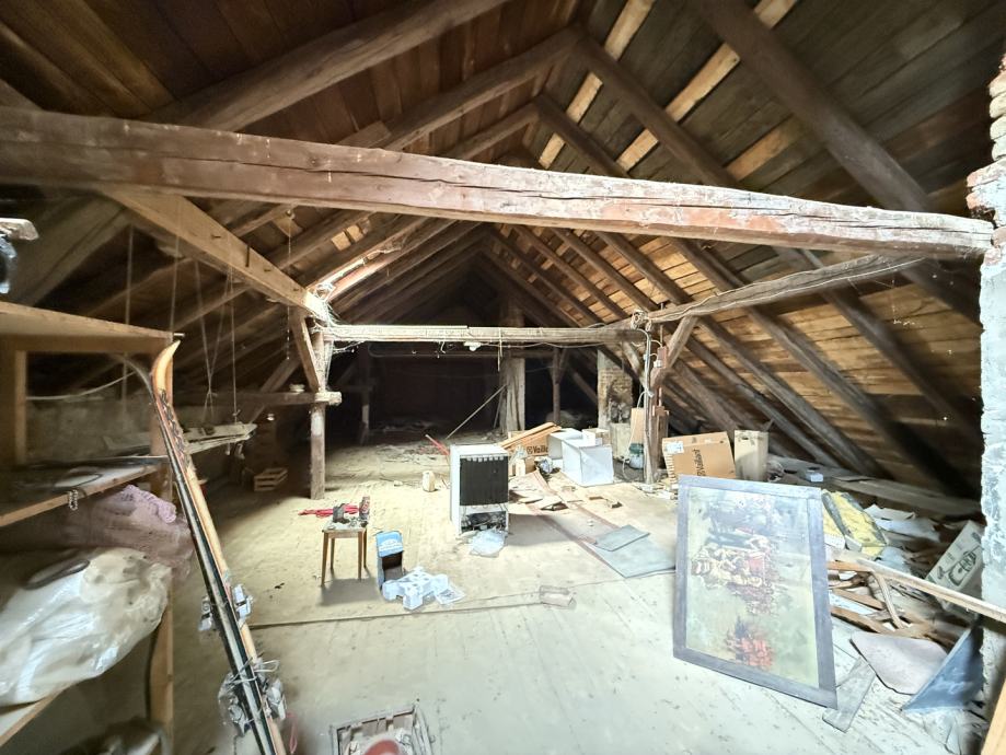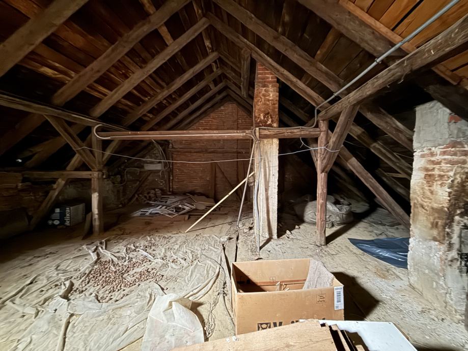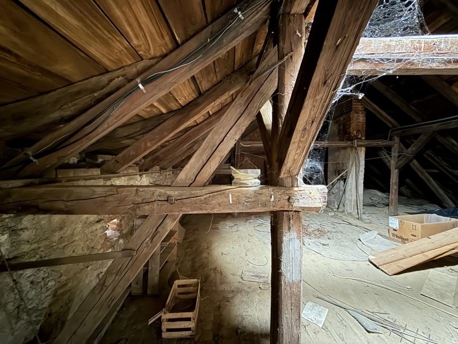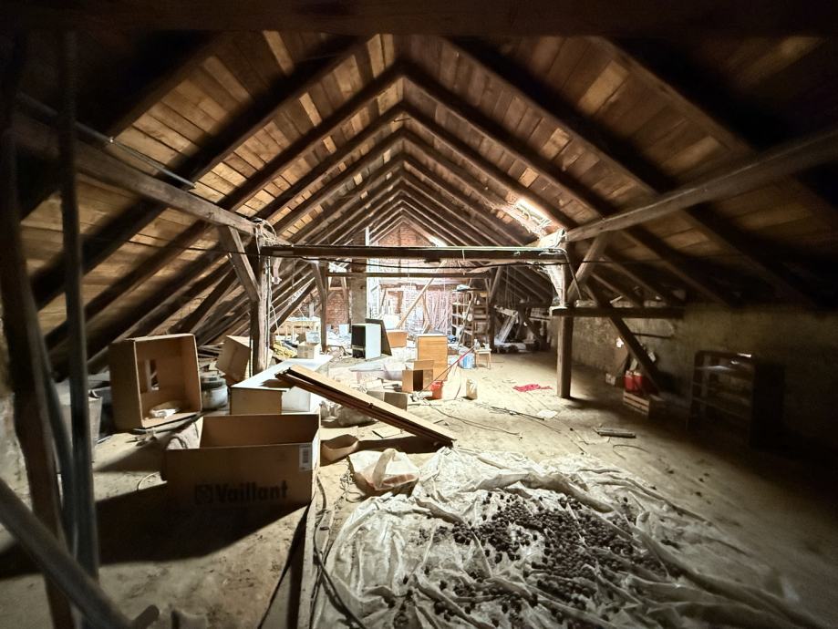 Potkrovlje, iako trenutno neuređeno, nudi izniman potencijal. Ukupne površine 170,00 m2, od čega je 119,00 m2 korisne površine s visinom stropa većom od 2 metra idealno za uređenje dodatnog stambenog prostora, ateljea ili više manjih jedinica.